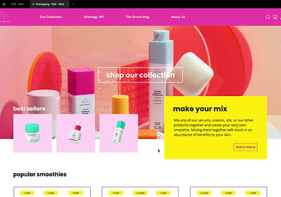 To gain insight about our prototype, I conducted 5 virtual think-aloud study and A/B testing of 3 different product pages. The participants had sufficient experience with e-commerce websites but low to no interaction with Drunk Elephant. We did an A/B test for the product page, because we were concerned our original smoothie indicator may be confusing.